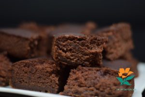 – Y un brownie de chocolate, vegano, como siempre sin gluten, que descubrimos en la página www.masalladelgluten.com (el enlace a la receta de esa página es la siguiente http://www.masalladelgluten.com/2011/07/brownies-sin-gluten-y-sin-huevos-receta.html ) Agradecemos a su creadora que lo comparta con el mundo, ya que los demás también podemos aprender.