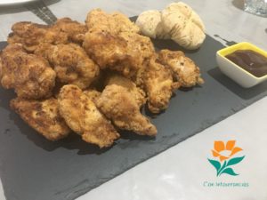 – Unas alitas de pollo frito al estilo americano (adaptando algunos ingredientes del libro “Cocina sin gluten. Un delicioso viaje culinario para celiacos” de Susaeta).